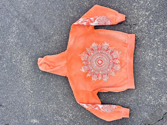 Los De Aztlan Tonatiuh Acid Wash Orange Zip Up Hoodie PREORDER